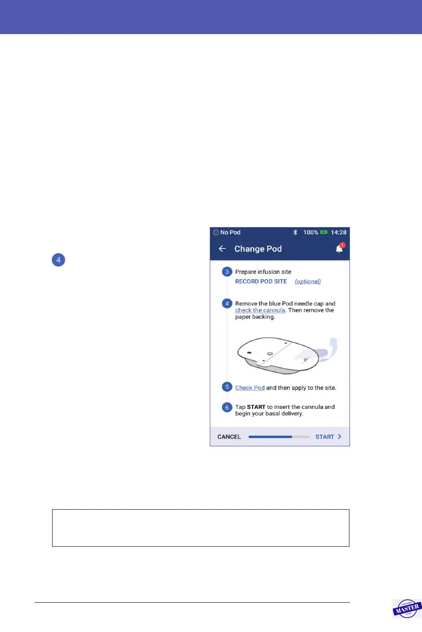Warning: Verify that the cannula does not extend beyond the adhesive