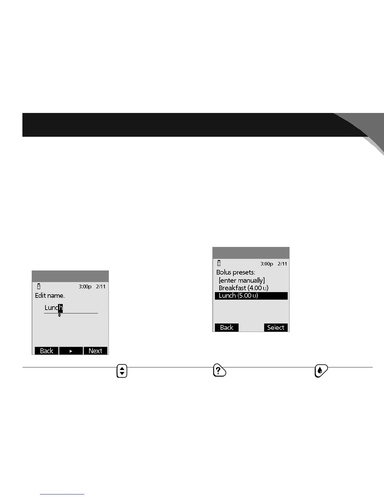 bolus you entered during setup; then press Next.