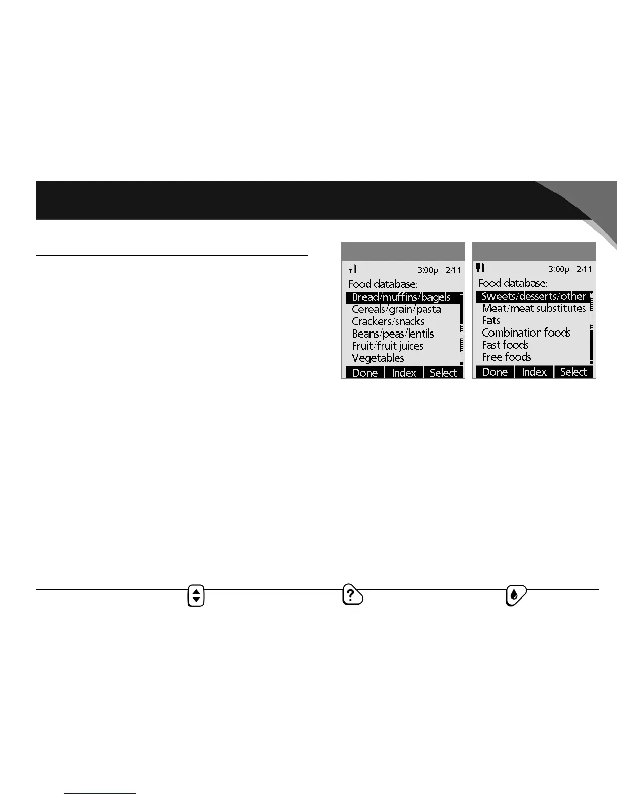 3. To choose from an alphabetical list of foods, press Index.
