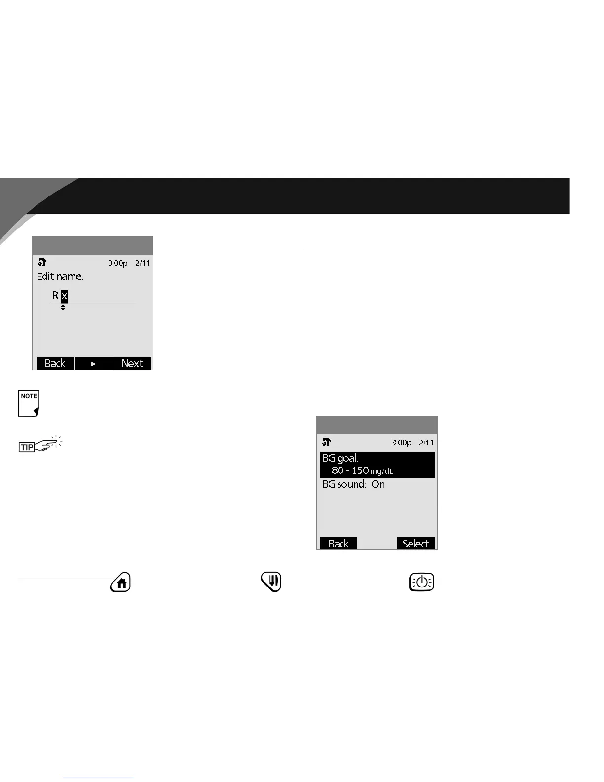 • BG lower and upper limit goals (for BG history)