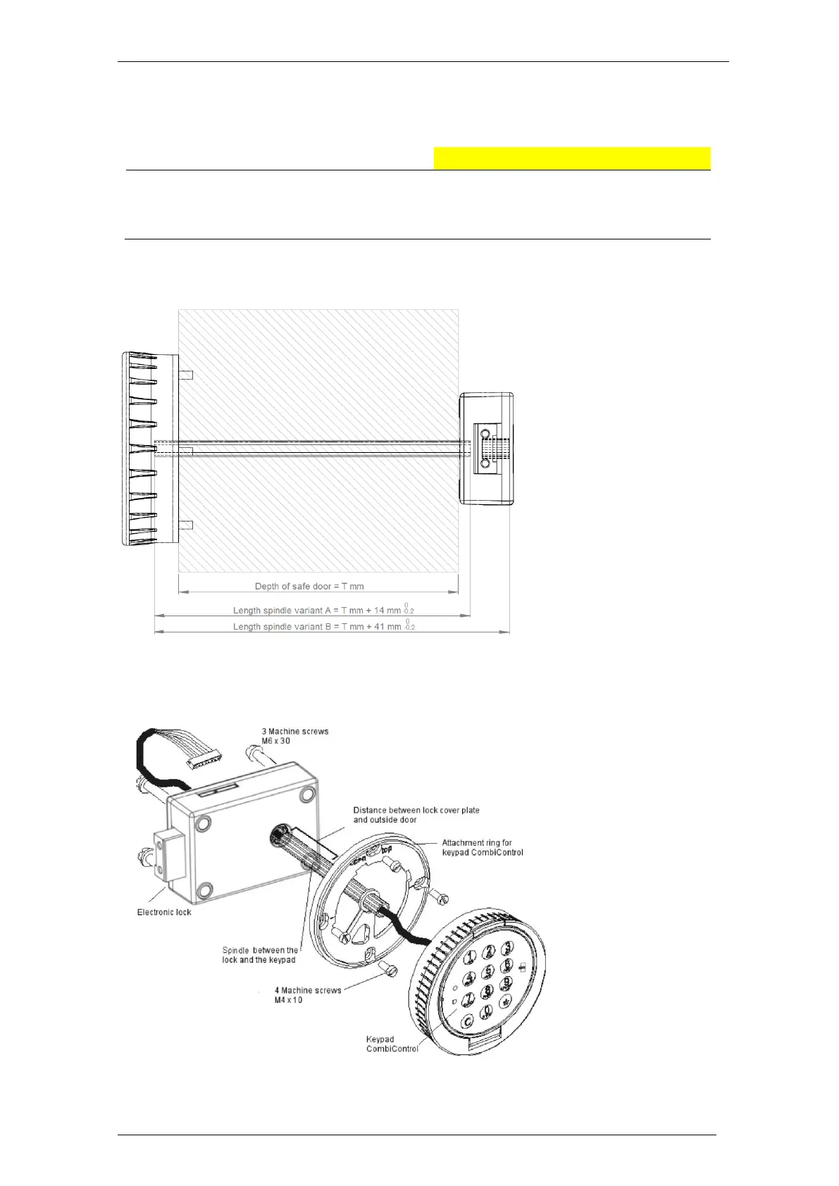 - to depth of safe door (Depth safe door = T mm) + length attached to lock and to