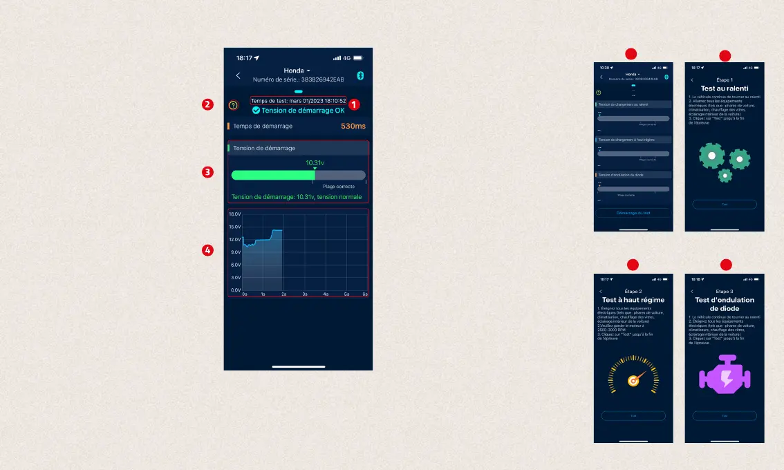 résultat du test. Si la tension au démarrage
