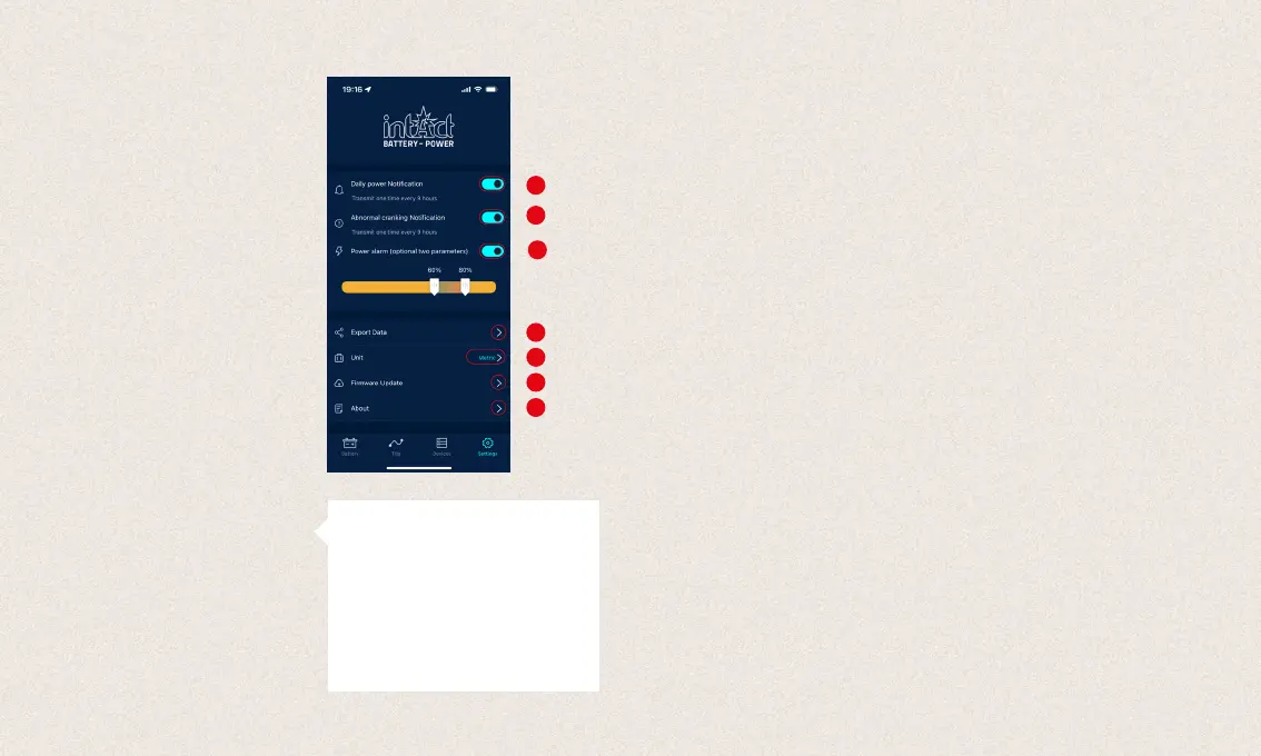 5. Unit: Here you can set the unit to metric or
