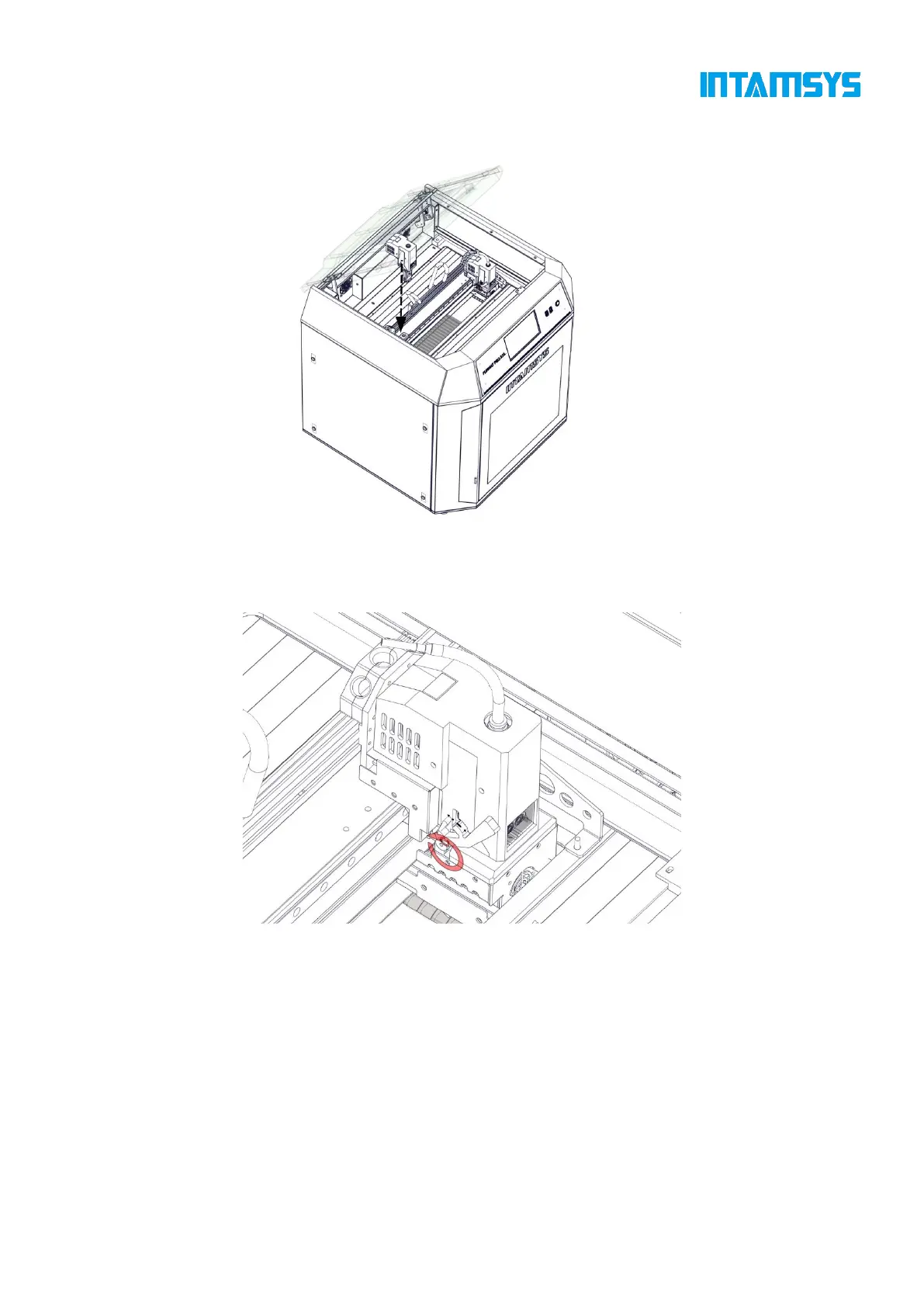Step 6: Rotate the pressure levers on both sides of the extruder holder upward to fix the extruder