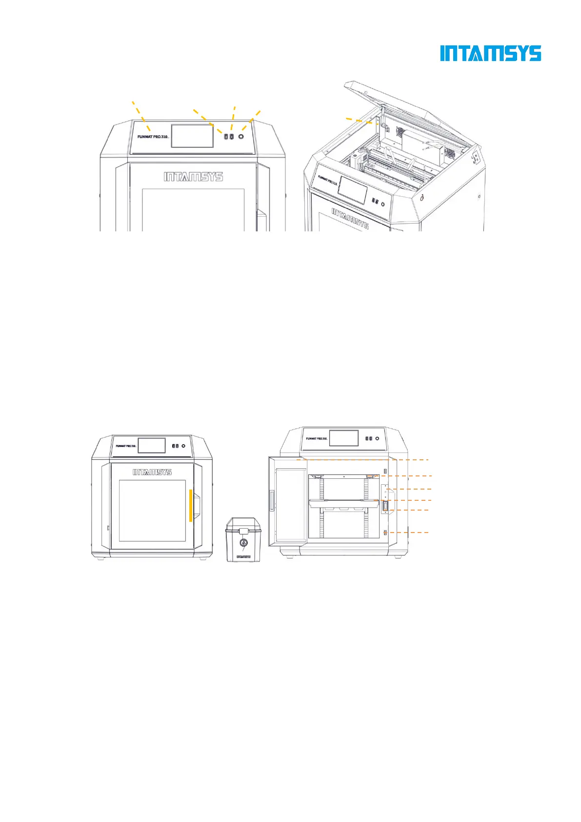 The printer is supplied with an external INTAMBox Sealed Drying Filament box that can hold up