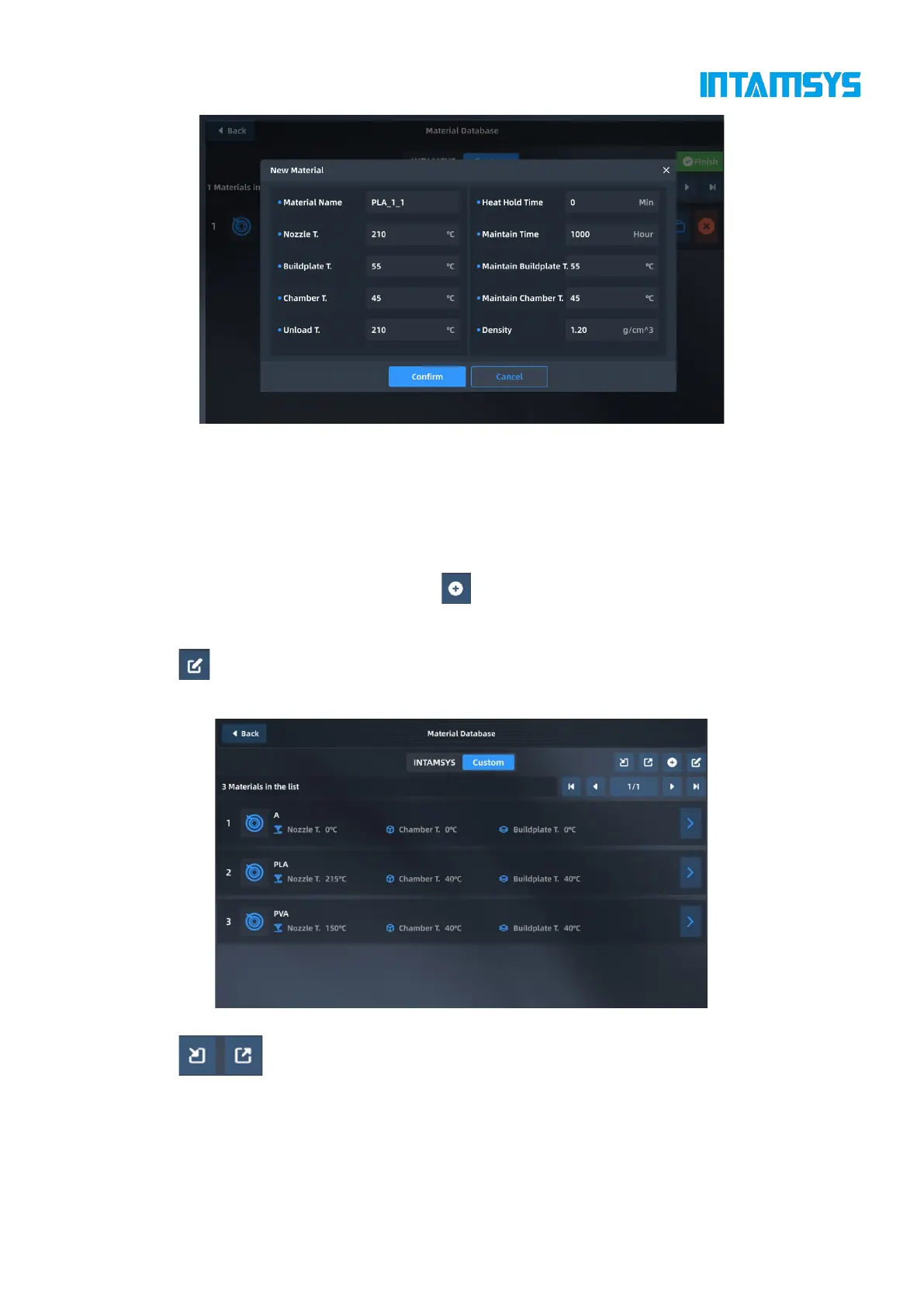 Click to modify, copy or delete the existing material process parameters, and click "Finish" to