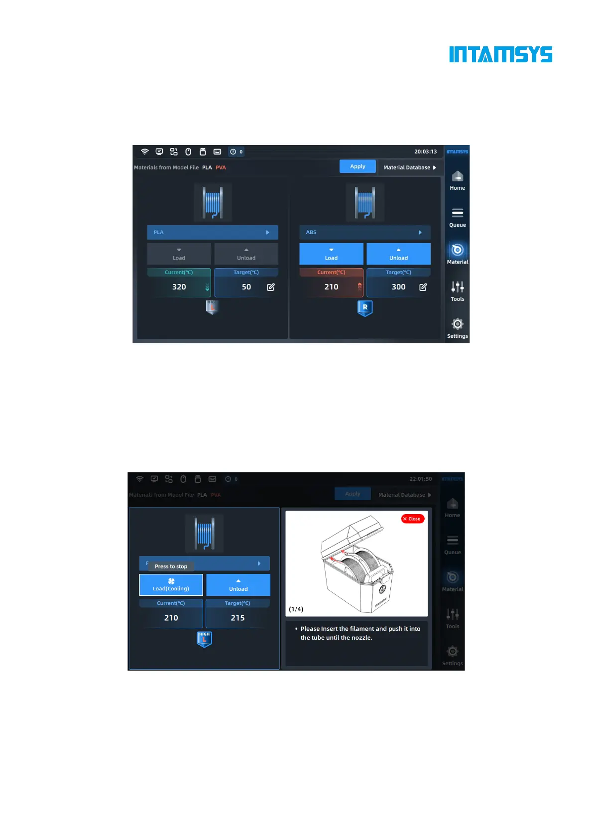 5. After selecting the material, press the Load button to load the material step by step according