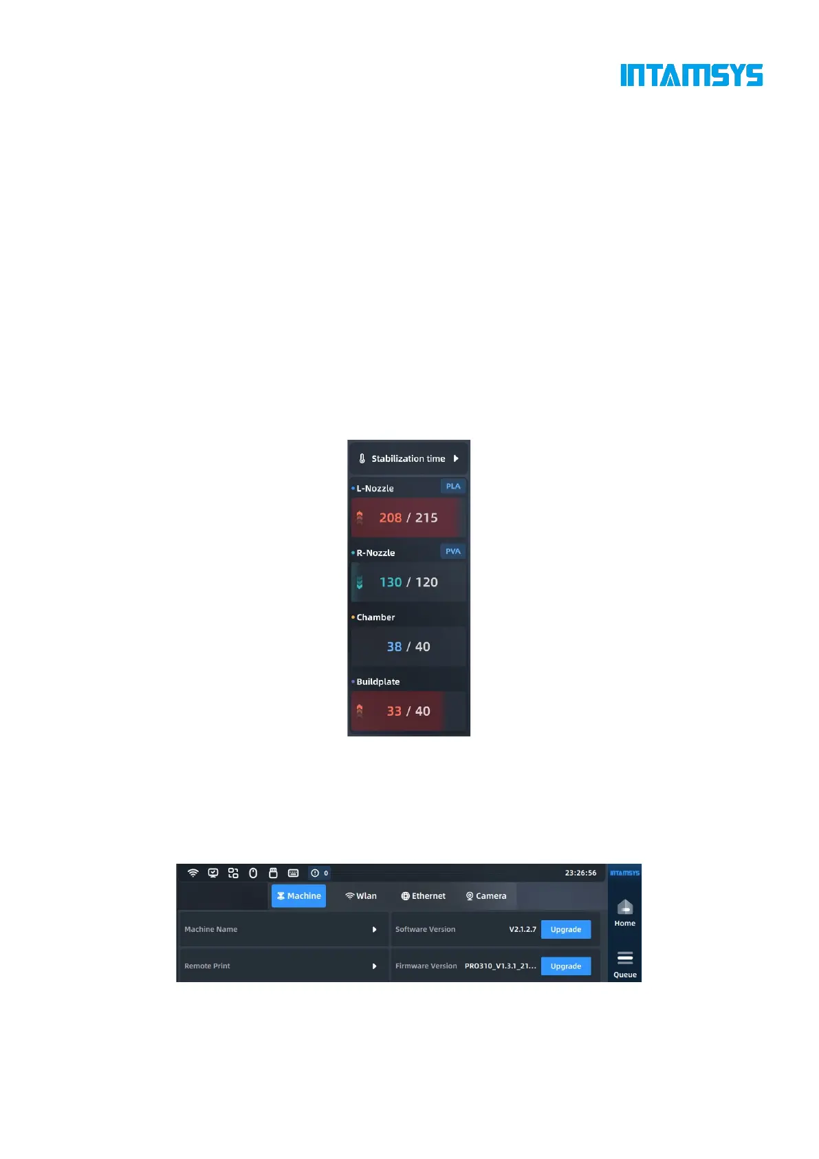 of right extruder; target temperature and real-time temperature of chamber; target temperature and