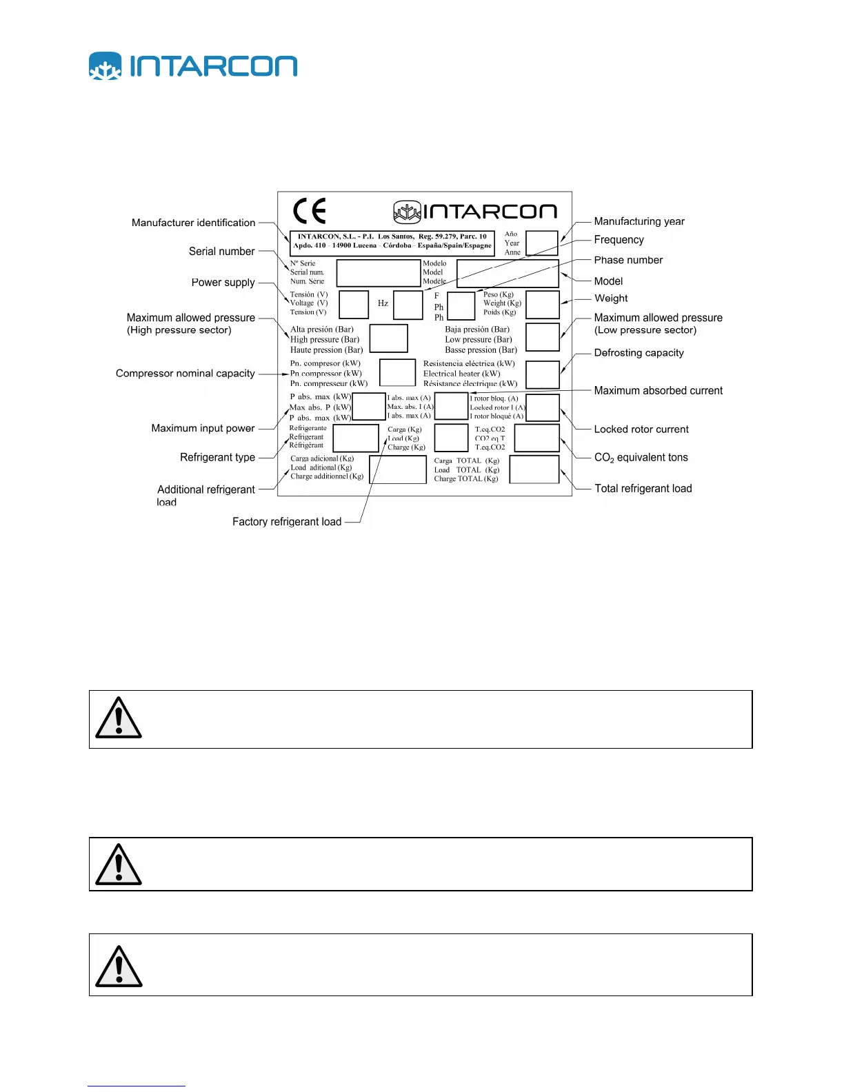 All All units are identified with the following data plate. In all communications with the manufacturer