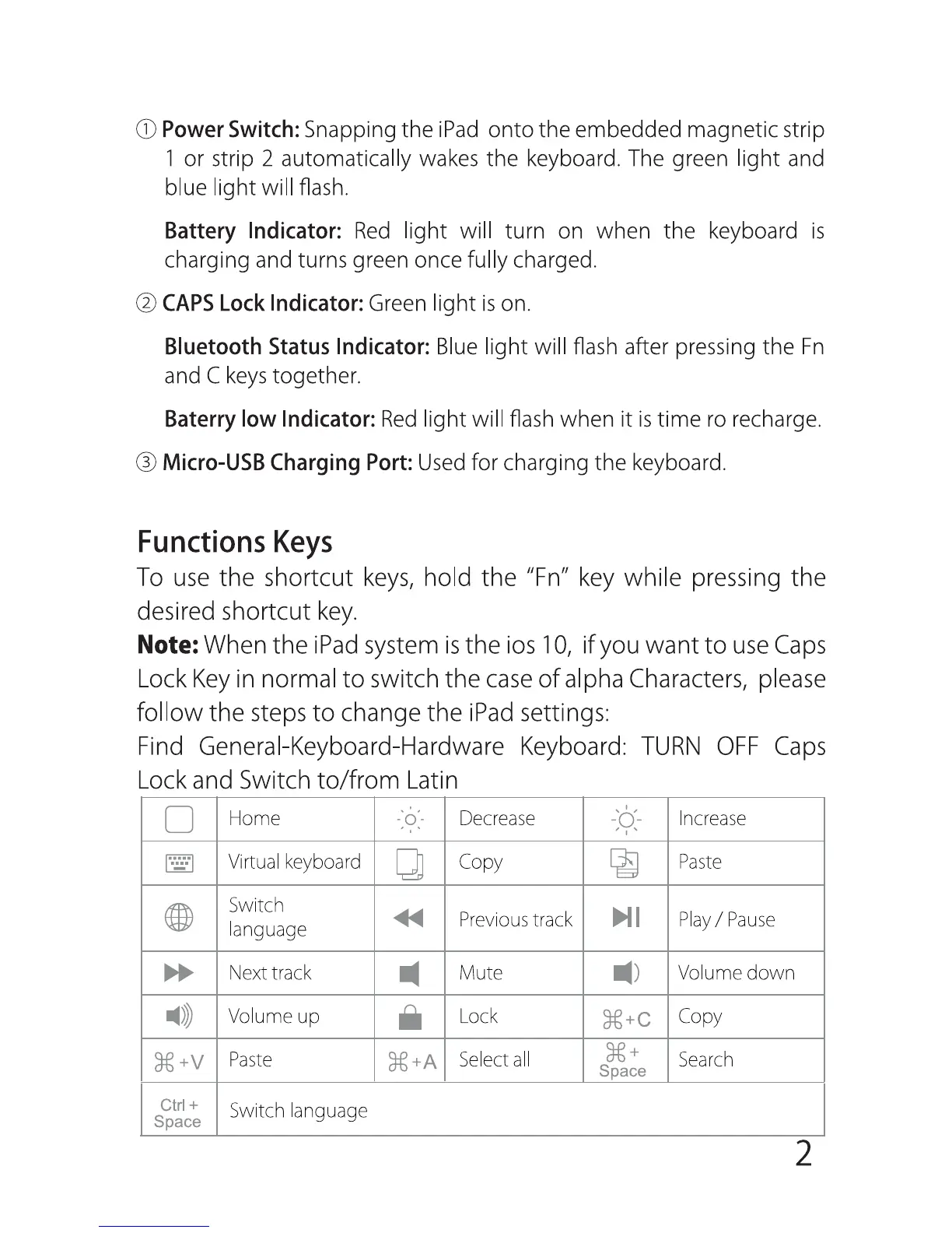 Intateck BK2001 - Functions Keys