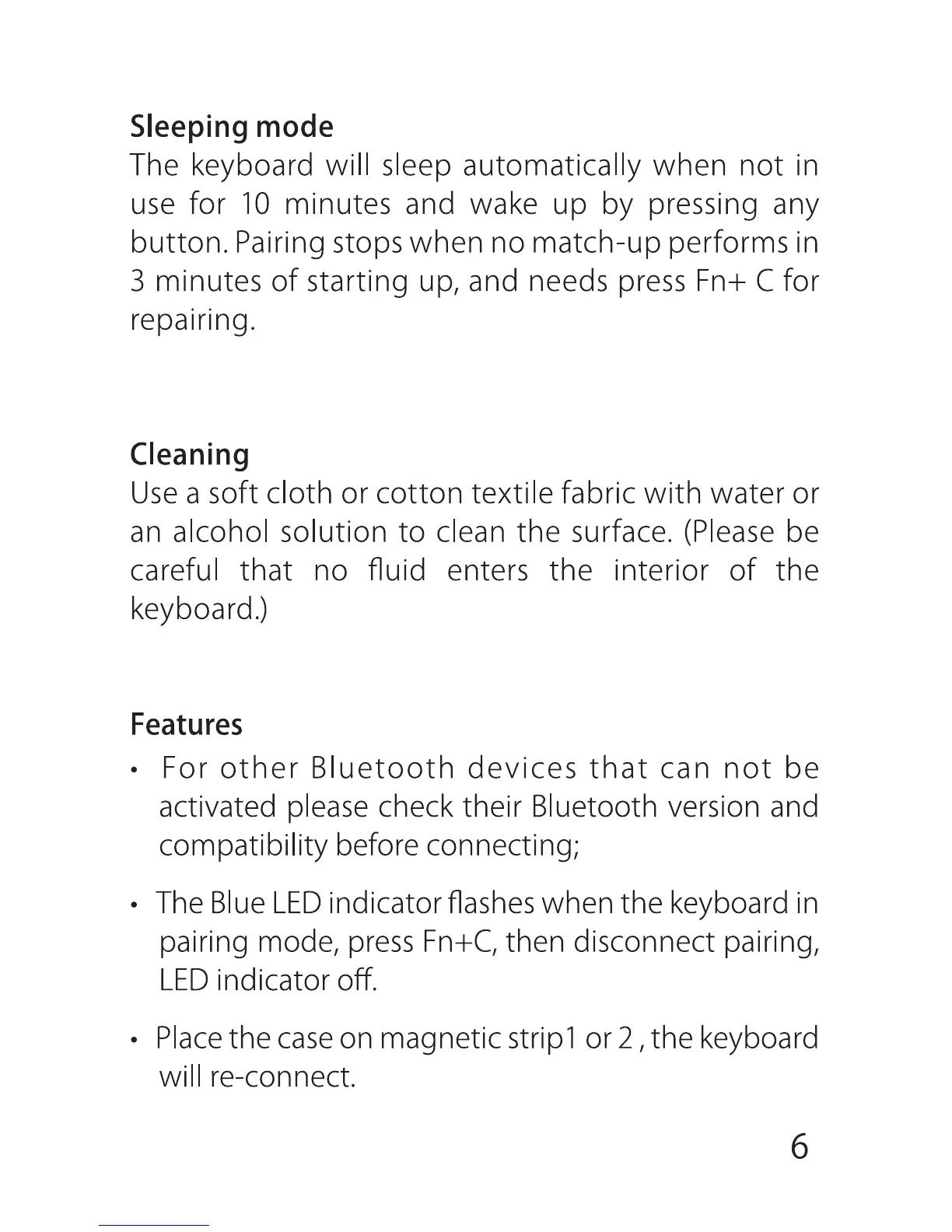 Intateck BK2001 - Sleeping Mode; Cleaning