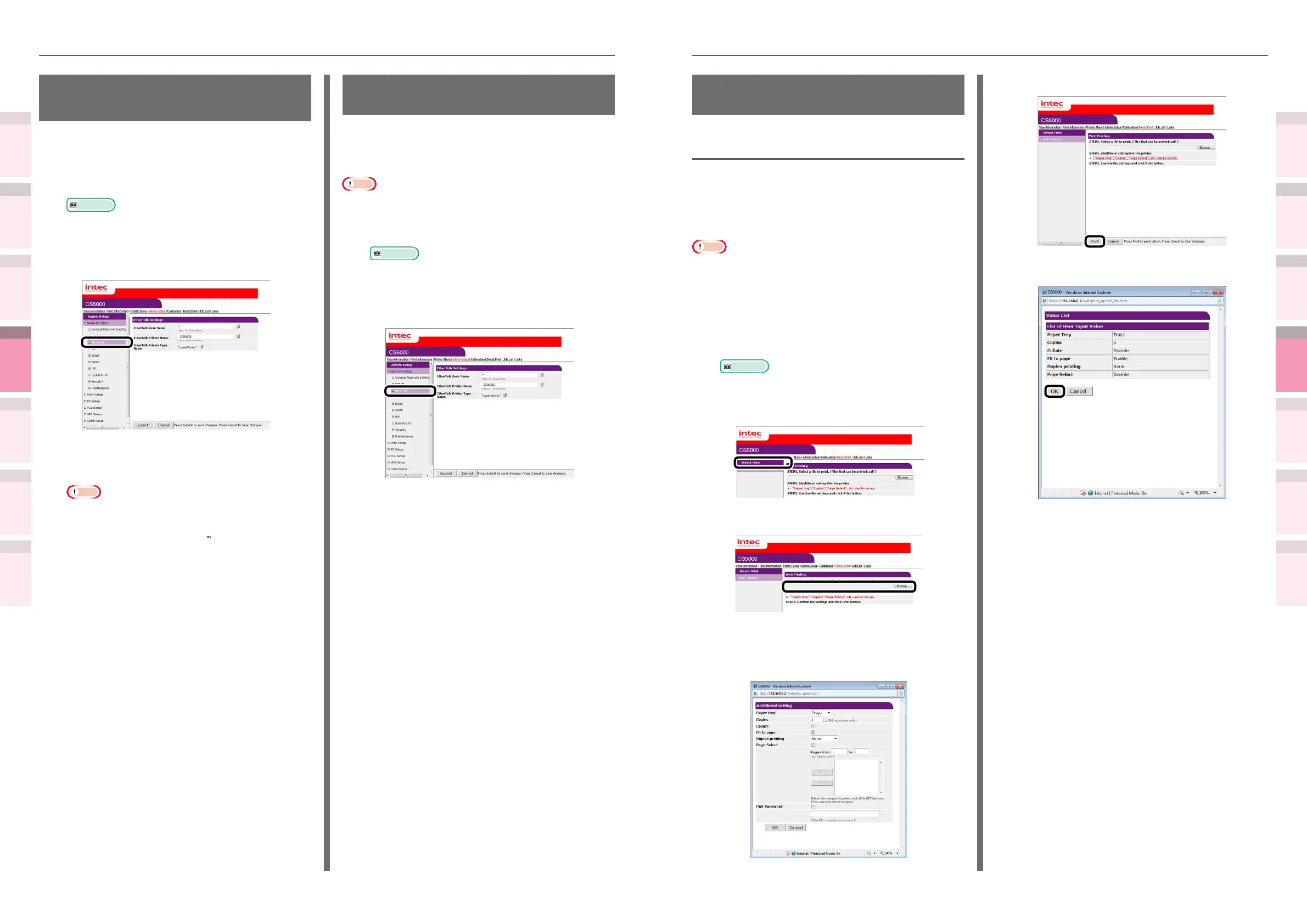 Setting the network from the web browser Setting the network from the web browser