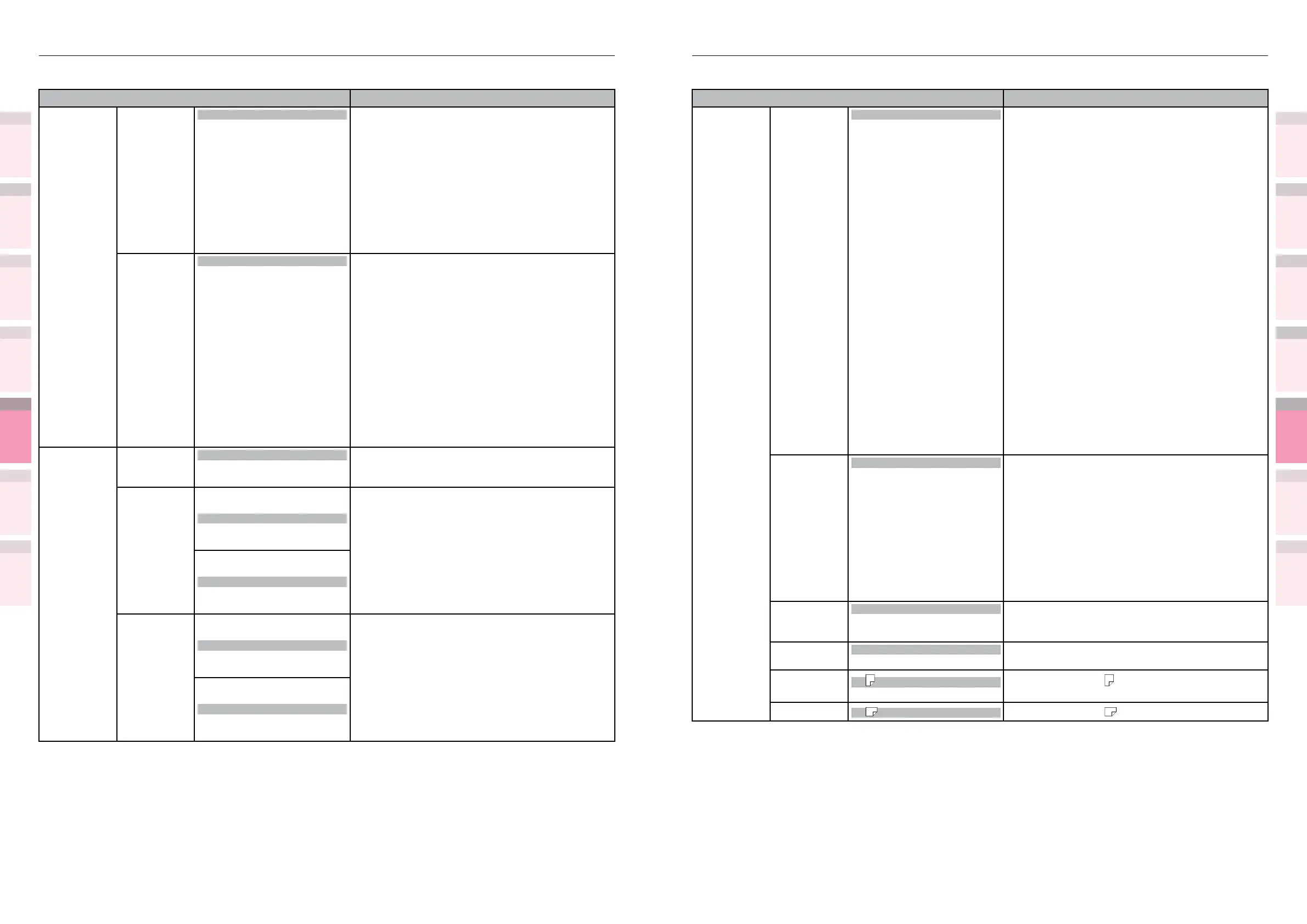 Table of setting items in the device setup screen Table of setting items in the device setup screen