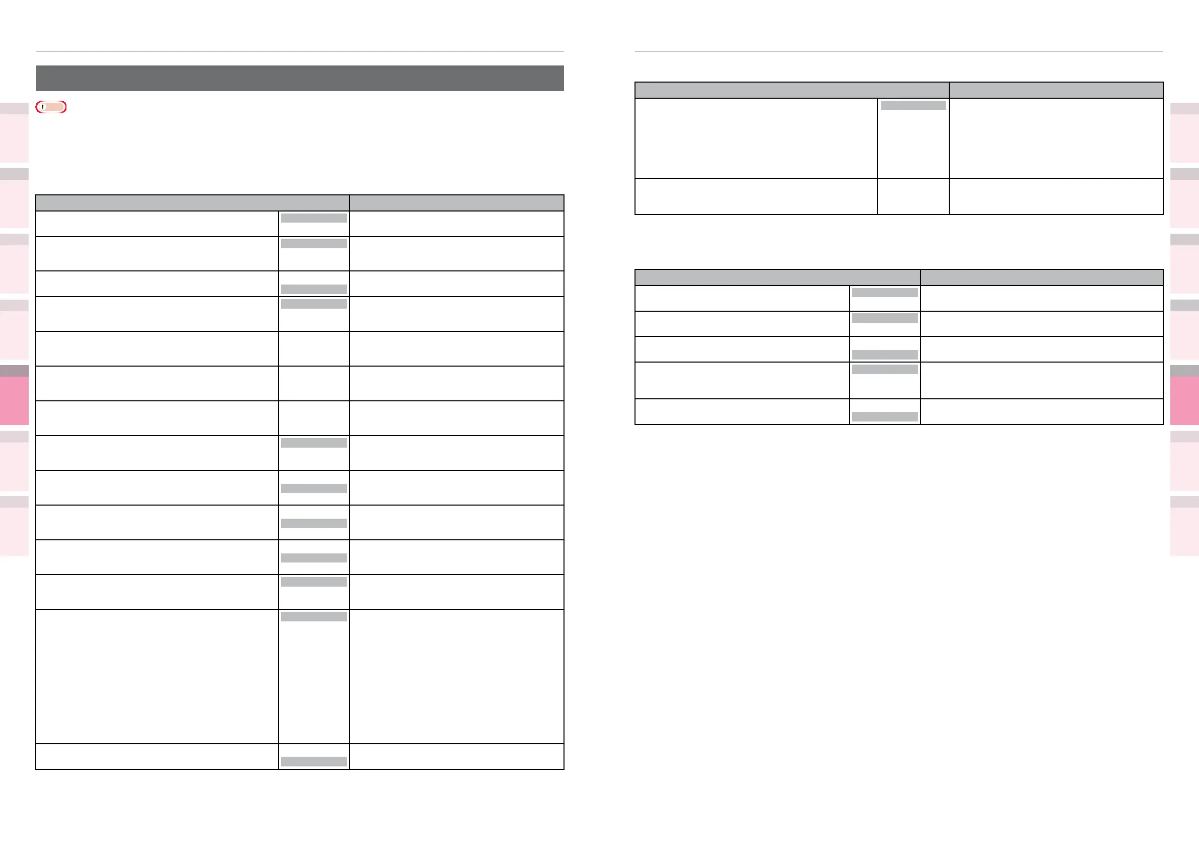 Shaded areas are factory-set values.