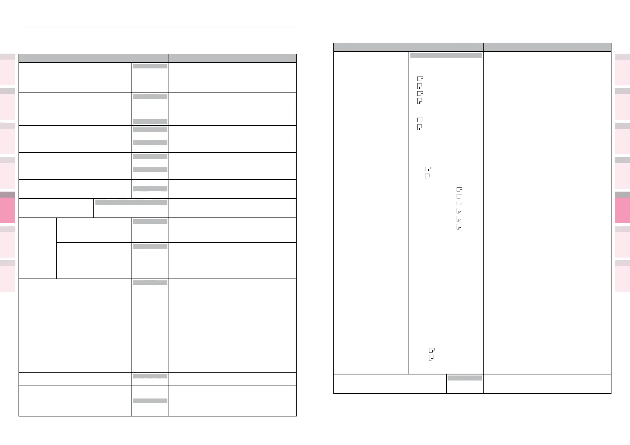 Shaded areas are factory-set values.