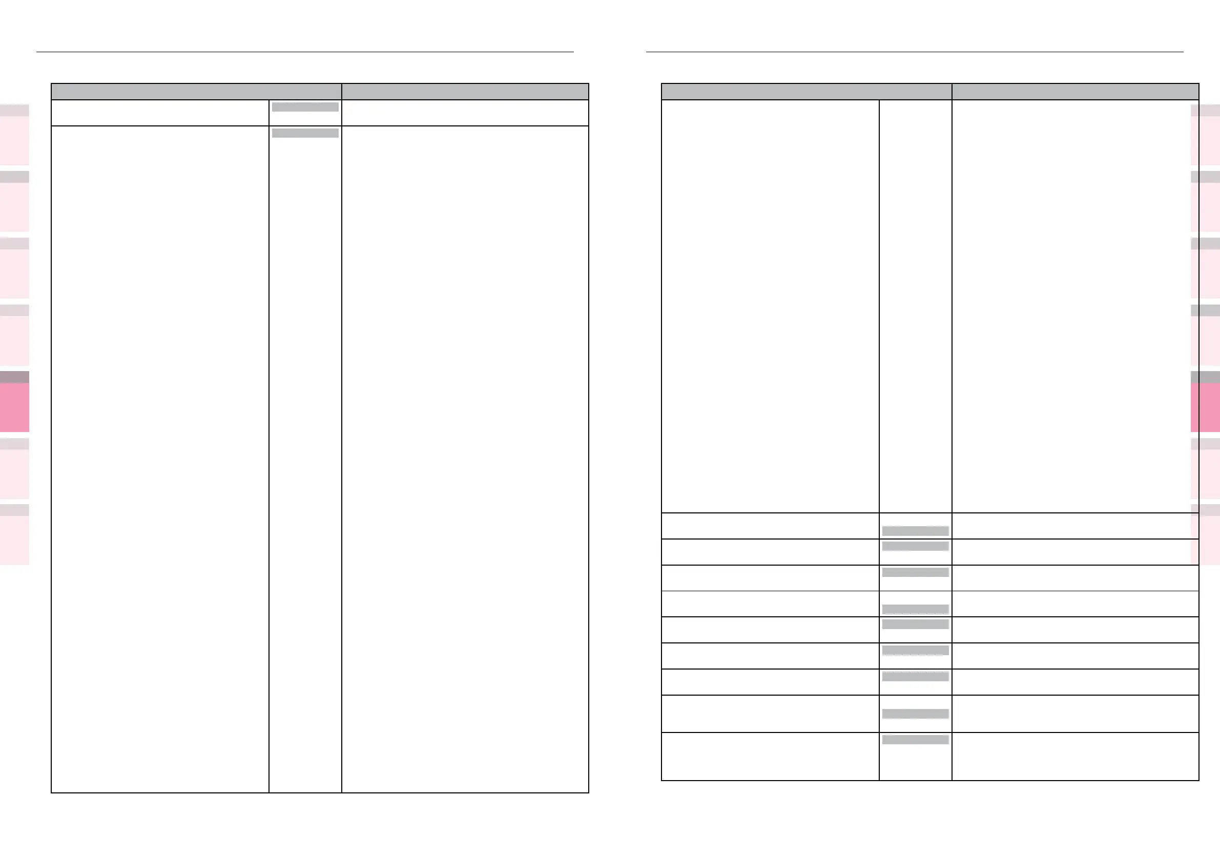 Shaded areas are factory-set values.