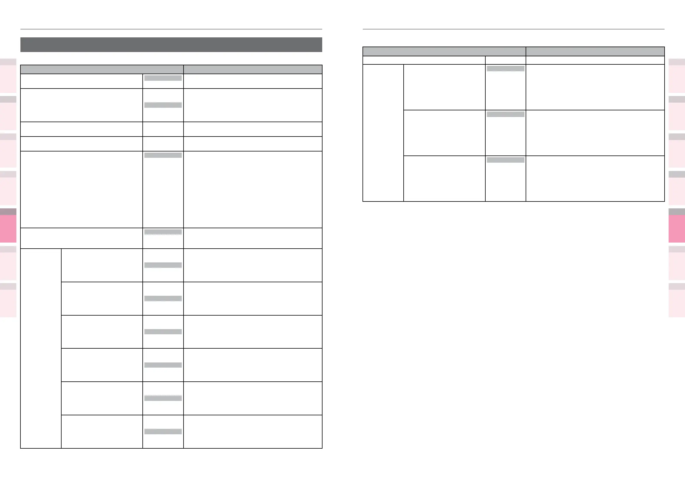 Shaded areas are factory-set values.