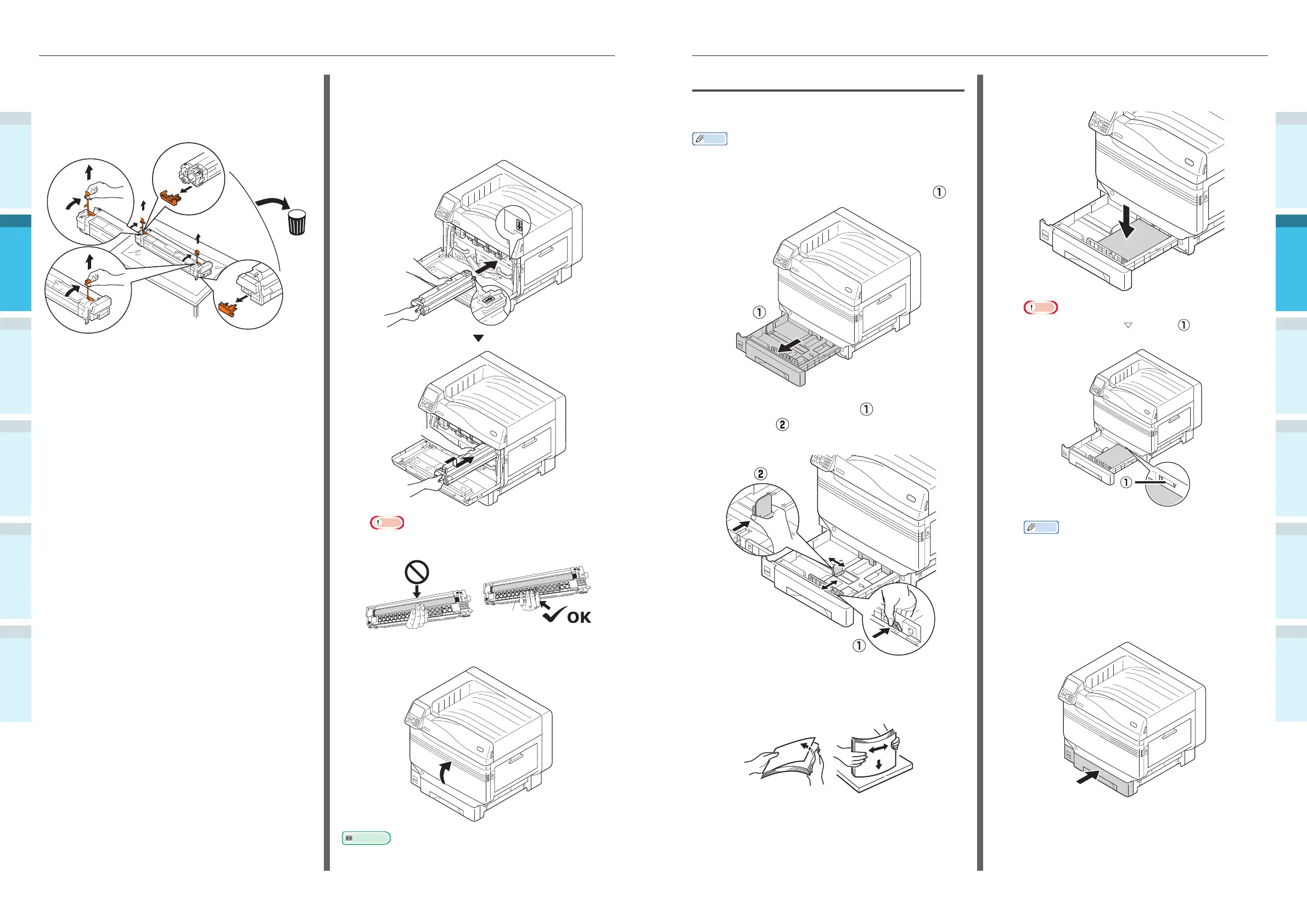 In this section, setting paper in tray 1 is used as an