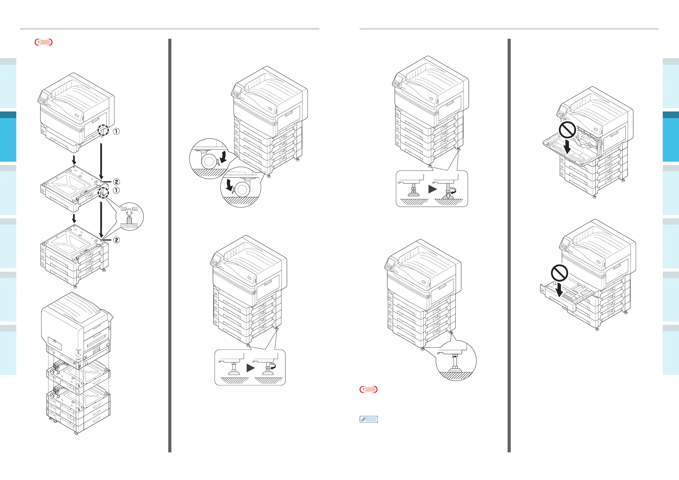 unit with casters, adjust the caster locks (x2) and feet (x2).