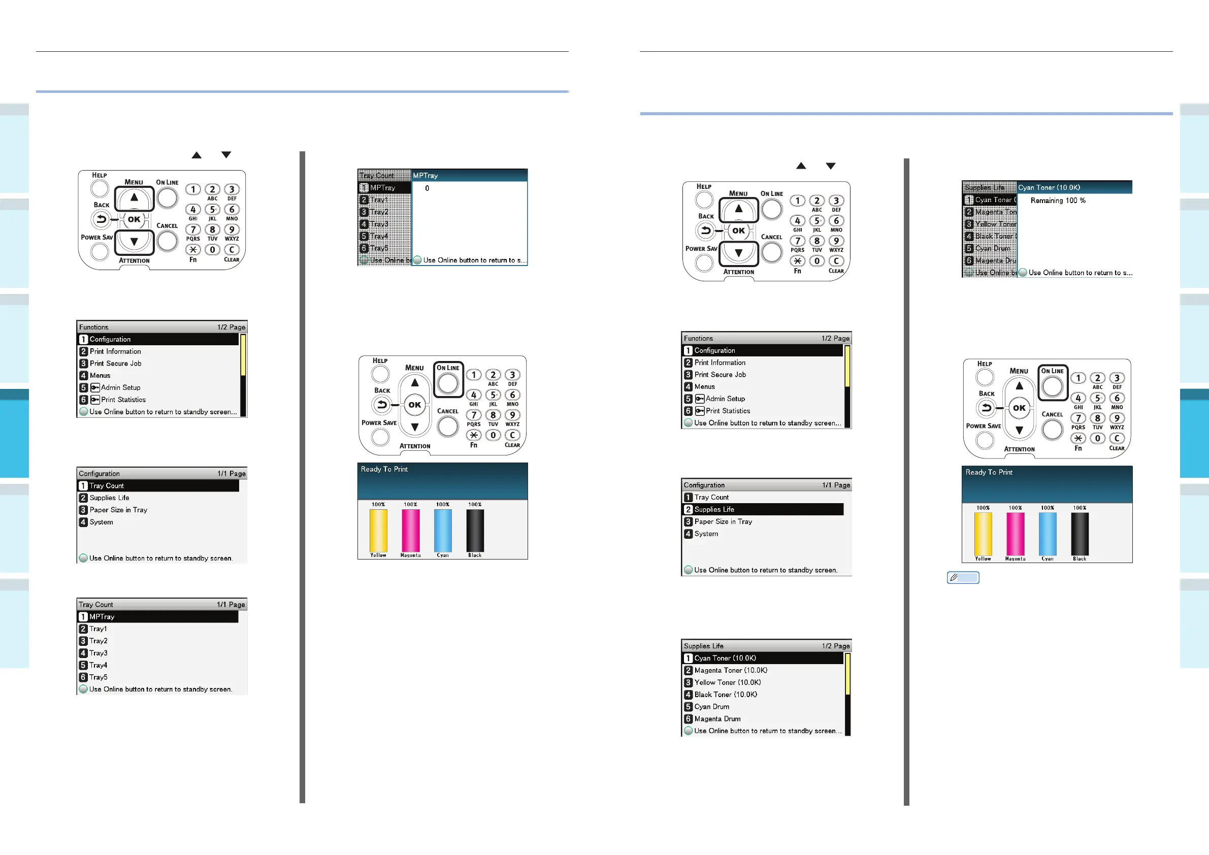 You can also check the quantities printed (fed) from each tray.