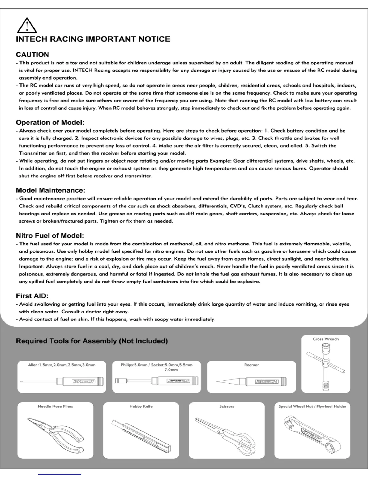 Intech BR-6E - Model Maintenance; First Aid; Required Tools for Assembly