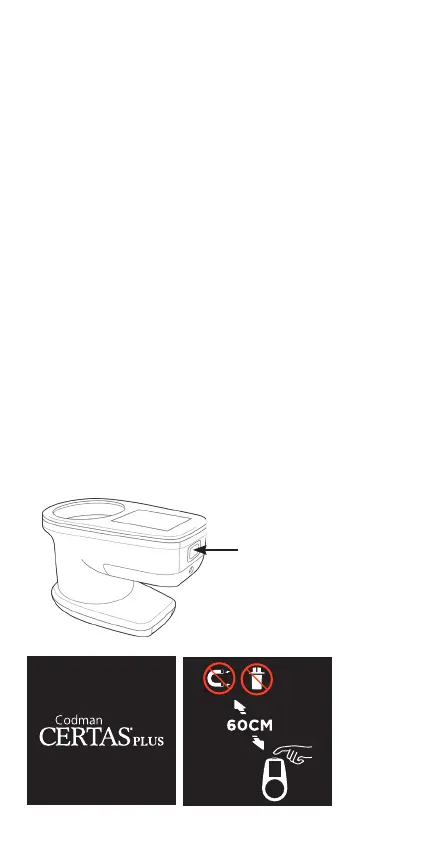 lila knappen på enhetens framsida tills skärmen slås på. CERTAS