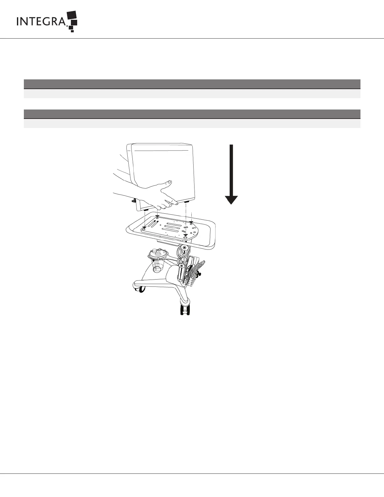 Place the console on the cart by aligning the four (4) feet on the boom of the console with the four (4) indentations on the cart as shown in Figure 9 5.