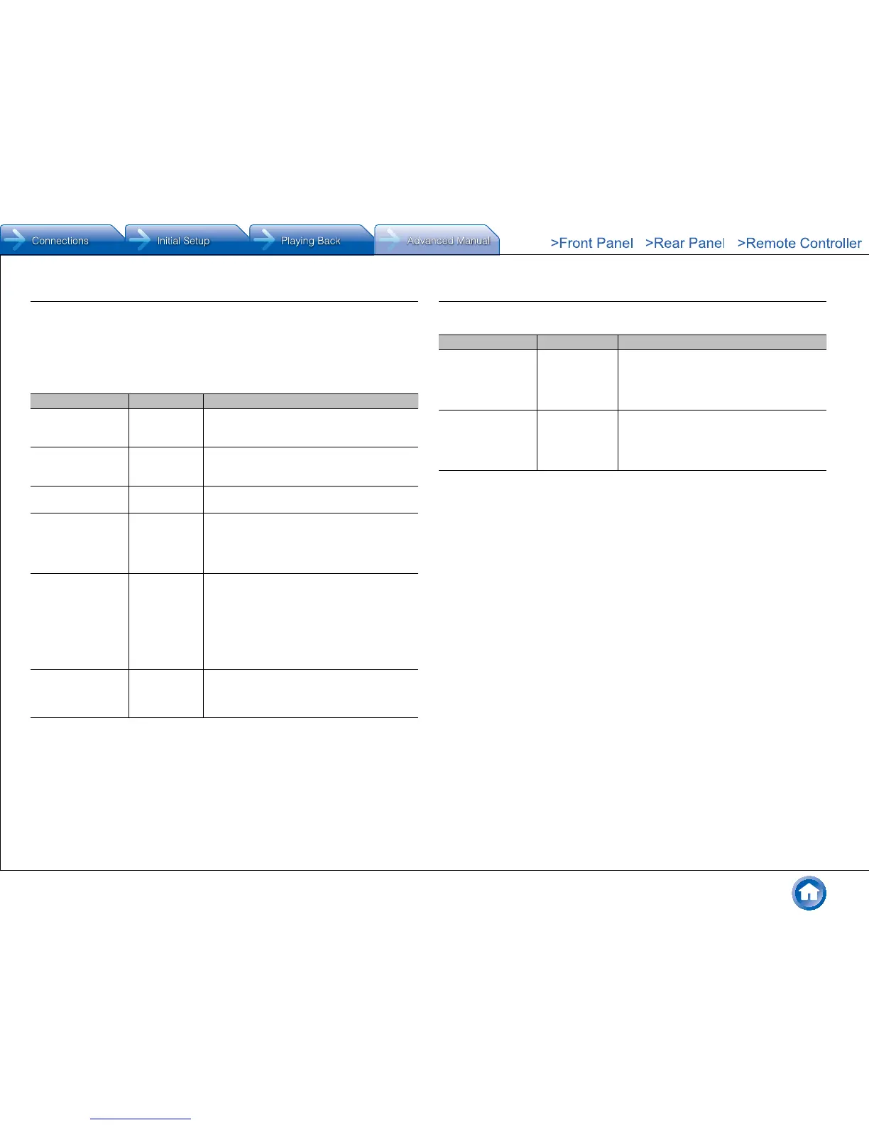 Mono/Multiplex Full Mono Set the listening mode for playing Dolby Digital
