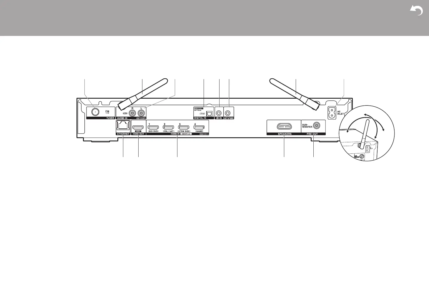 5. IR IN port: Allows you to connect a multiroom remote control kit.