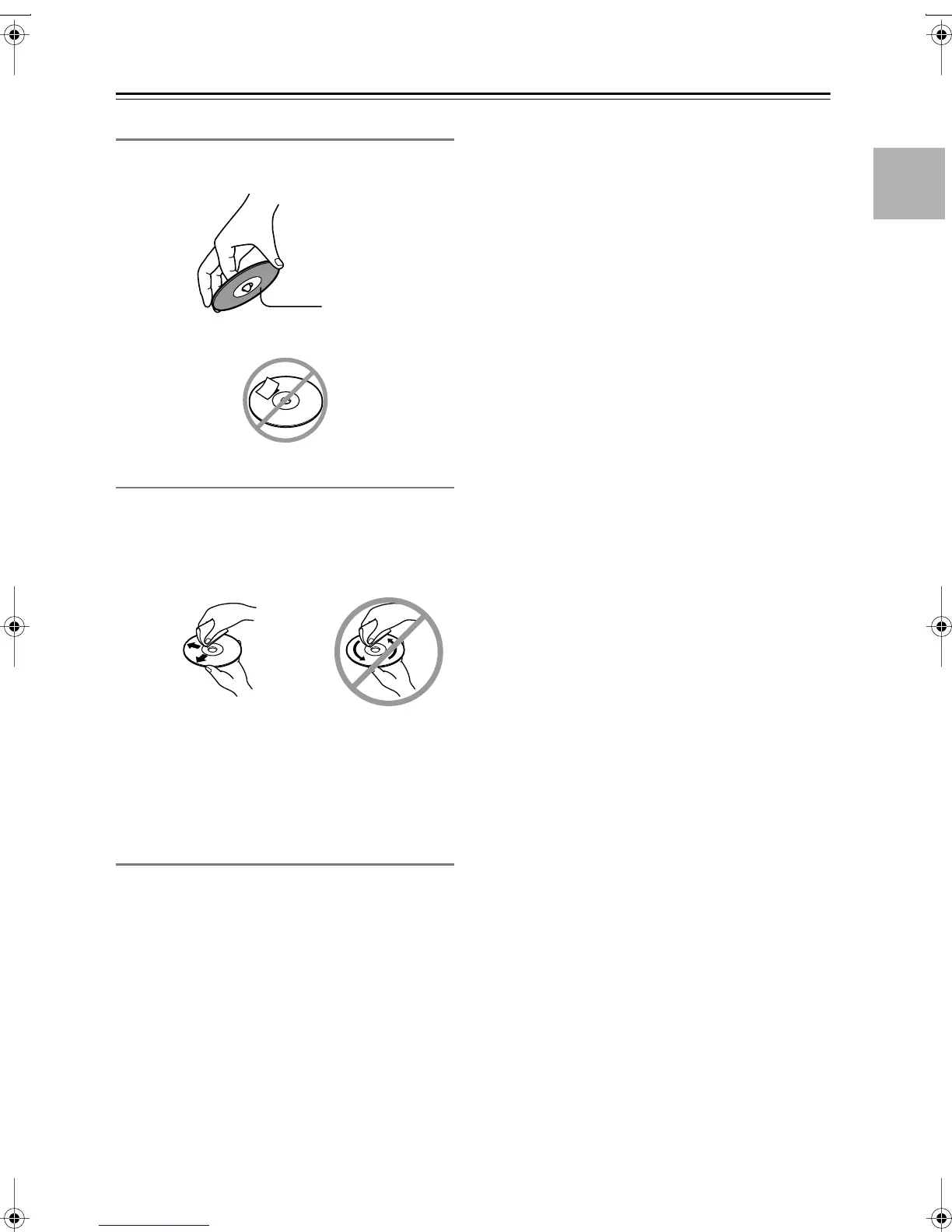 •Never attach adhesive tape or sticky labels to discs.