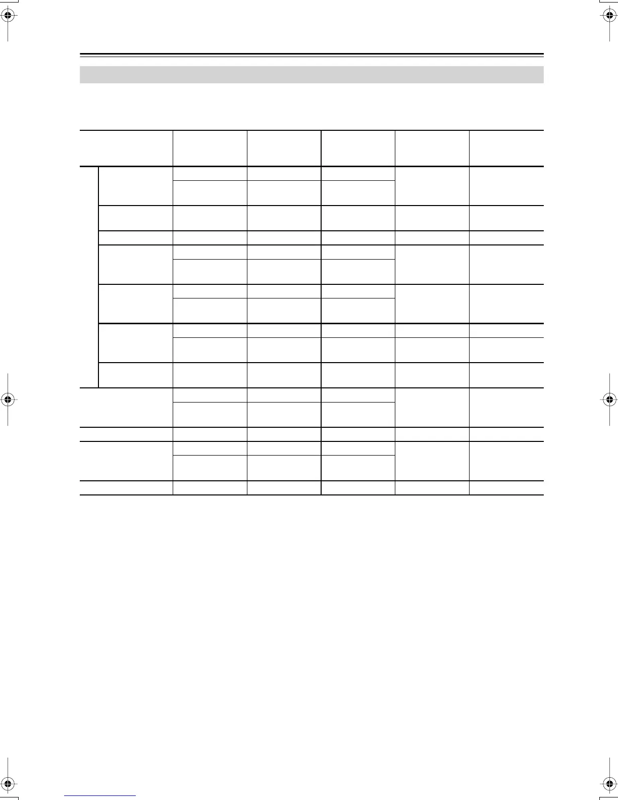 The table below shows how the audio settings you make in the Initial Settings menu (see page 43) affect the output from