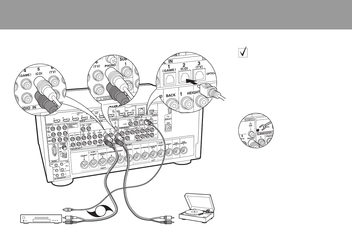 connect to any AUDIO IN jack other than the PHONO
