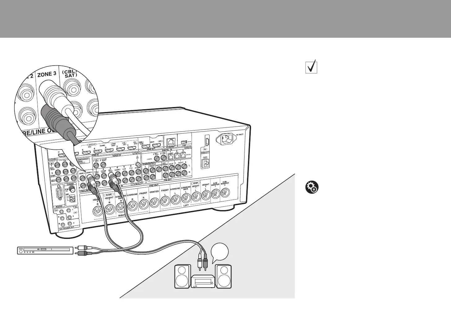 the main room. Connect the ZONE 3 PRE/LINE OUT