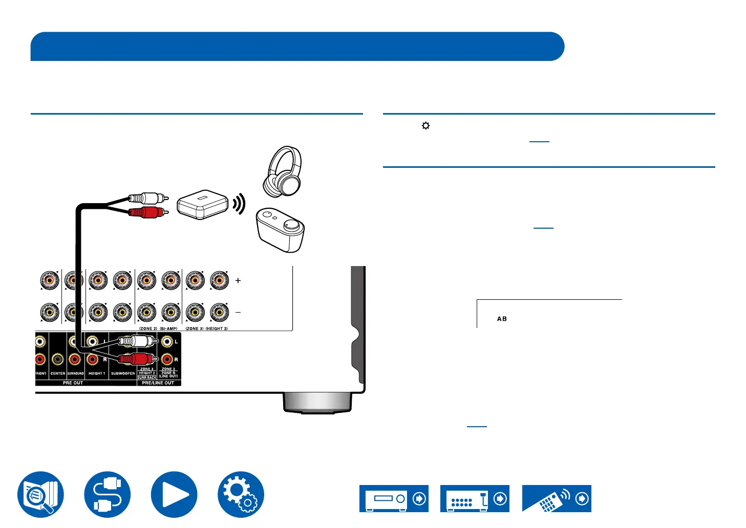 When you connect wireless headphones or a wireless speaker transmitter to the ZONE B LINE OUT jacks of this unit, you can play back the same source through the