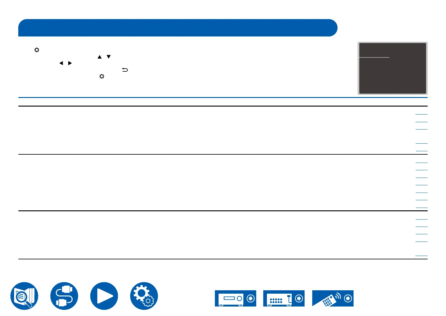 Select the item with the cursors / of the remote controller, and press the Enter button to conrm your selection.