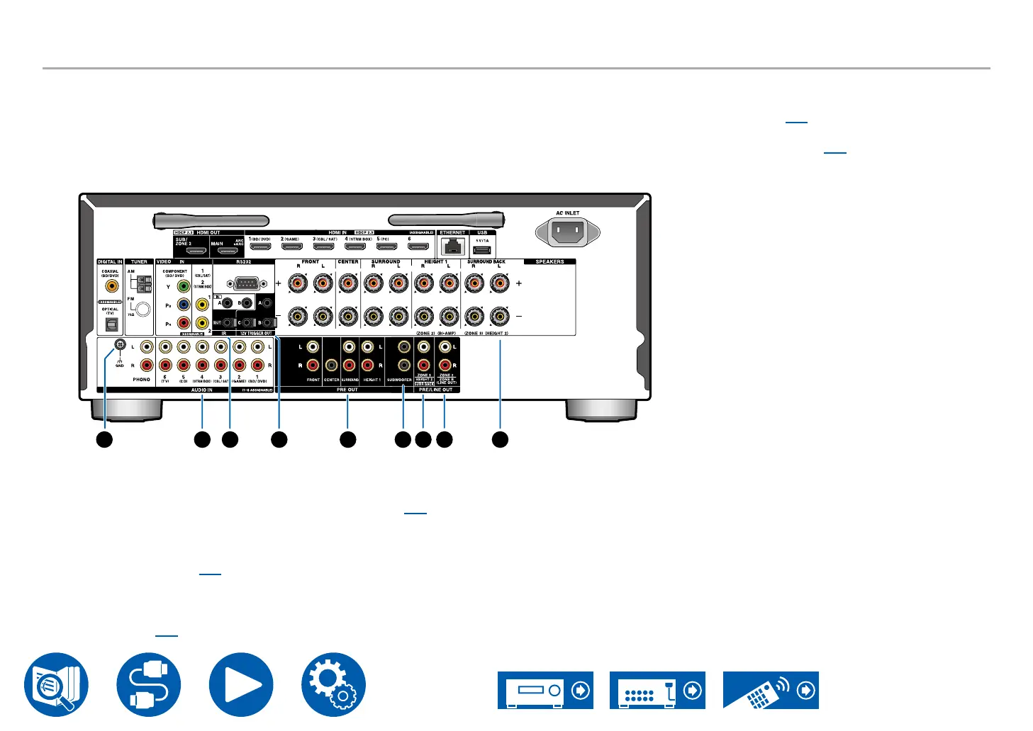 PRE OUT jacks: Connect to a power amplier.