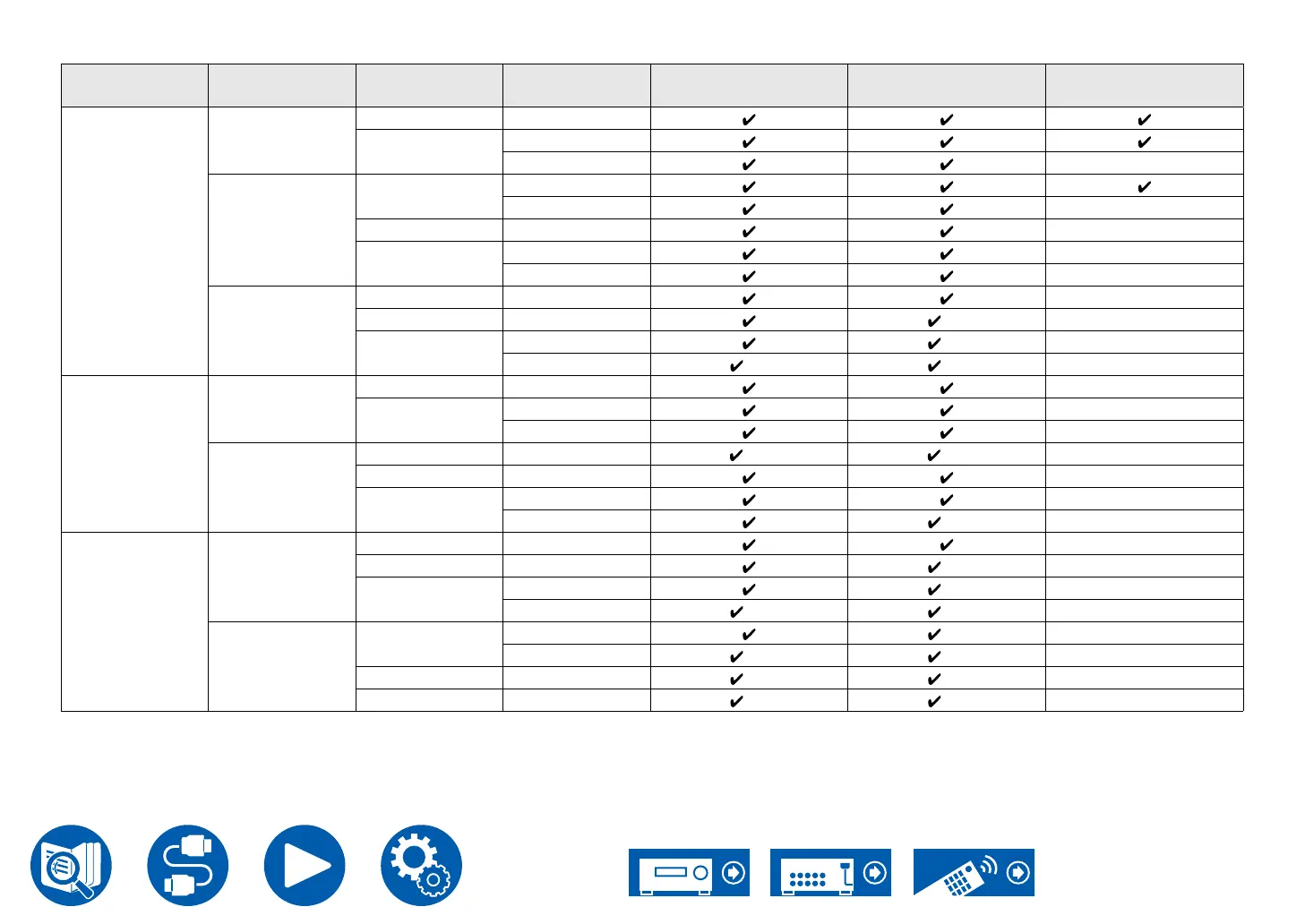 Frame rate Color space Color depth HDMI IN 1 - 3 HDMI IN 4 - 6 AUX Input HDMI (Front)