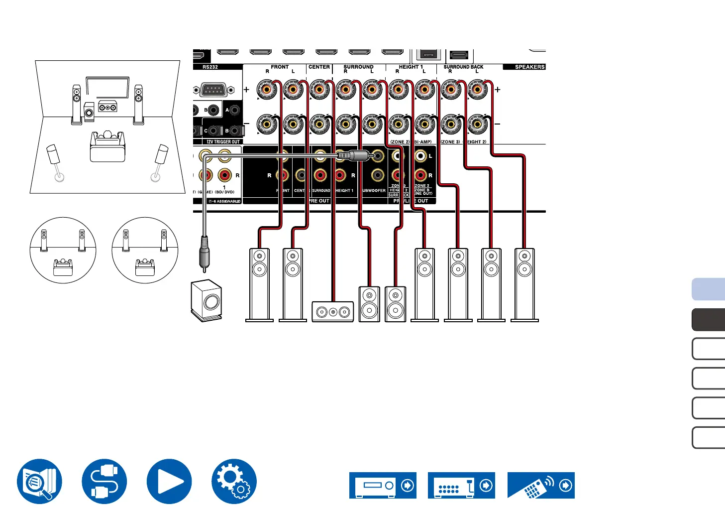 To output audio from an externally connected AV component to ZONE 3, use an analog audio cable for connection. Note that ZONE 3 output is not possible with the