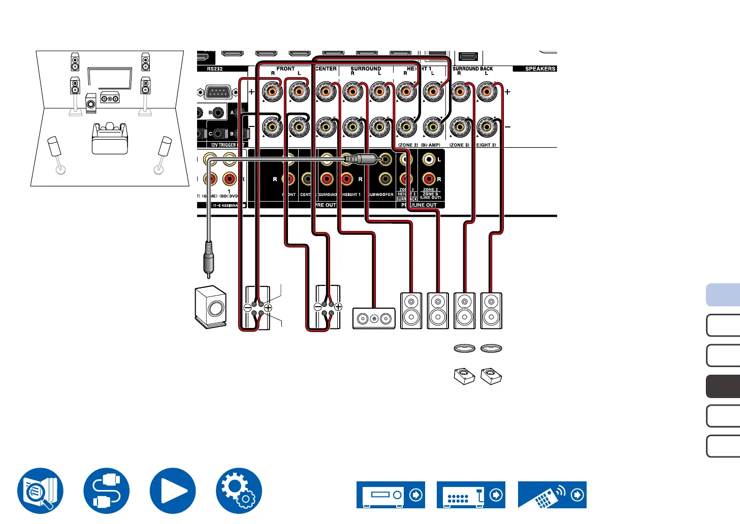 *1 Connect the Height Speakers you have actually installed (HL/HR: Height Speakers, Top Speakers, Dolby Enabled Speakers).