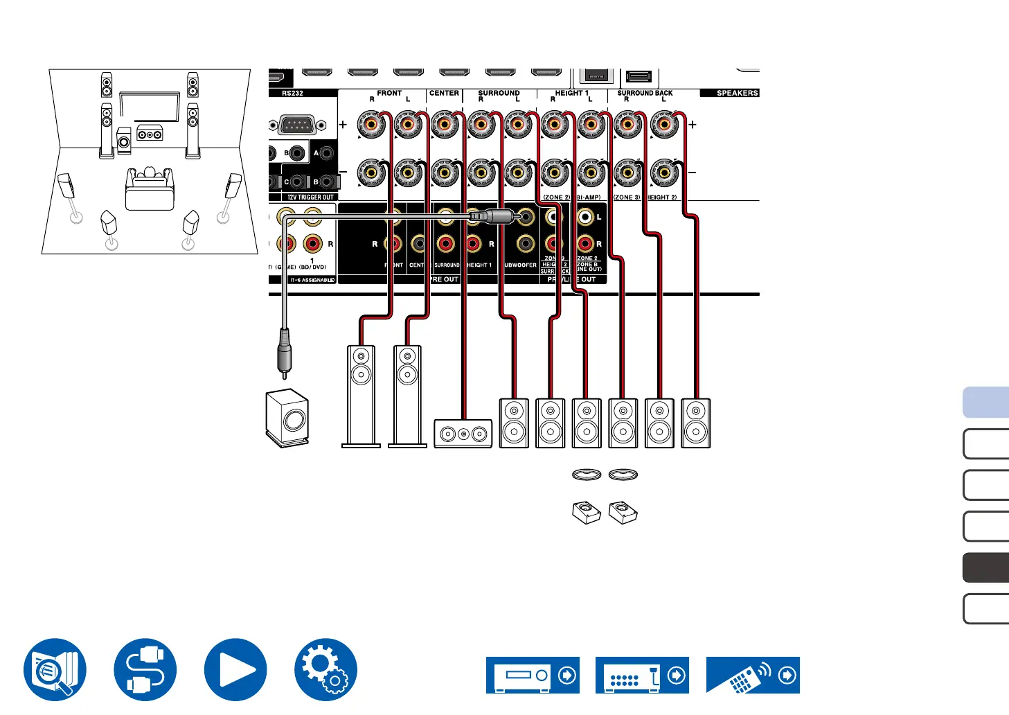 *1 Connect the Height Speakers you have actually installed (HL/HR: Height Speakers, Top Speakers, Dolby Enabled Speakers).