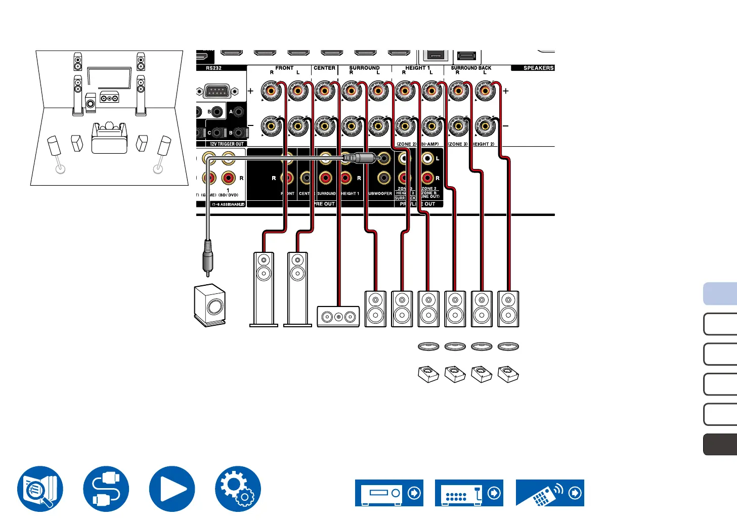 *2 Connect the Height Speakers you have actually installed (HL2/HR2: Rear Height Speakers, Top (rear side) Speakers, Dolby Enabled Speakers (Surround)).