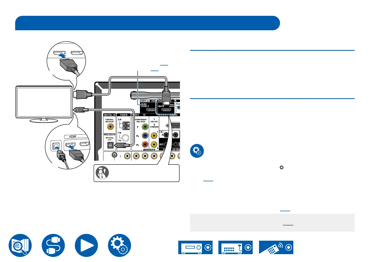 the TV for connection. You connect the HDMI cable to the HDMI OUT MAIN jack