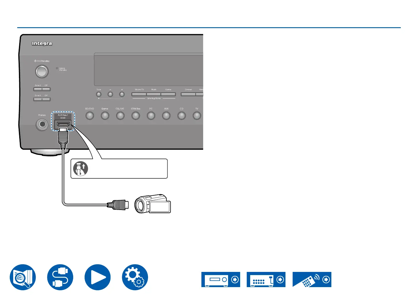 Connect a video camera, etc. to the AUX Input HDMI jack on the front panel