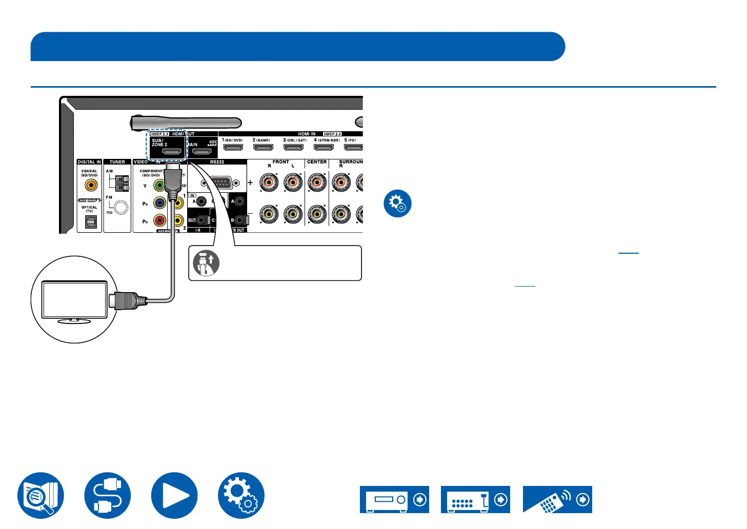 Output Assign" - "TV Out / OSD" - "Zone 2 HDMI" ( →p108) to "Use" on the