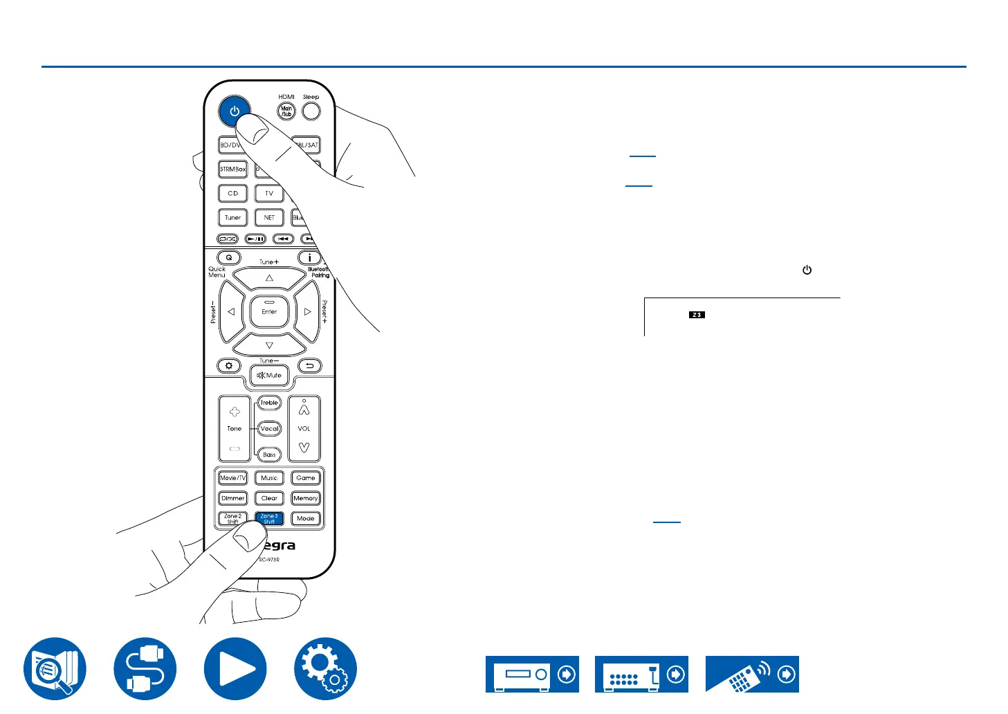 1. While pressing and holding the Zone 3 Shift button on the remote controller,