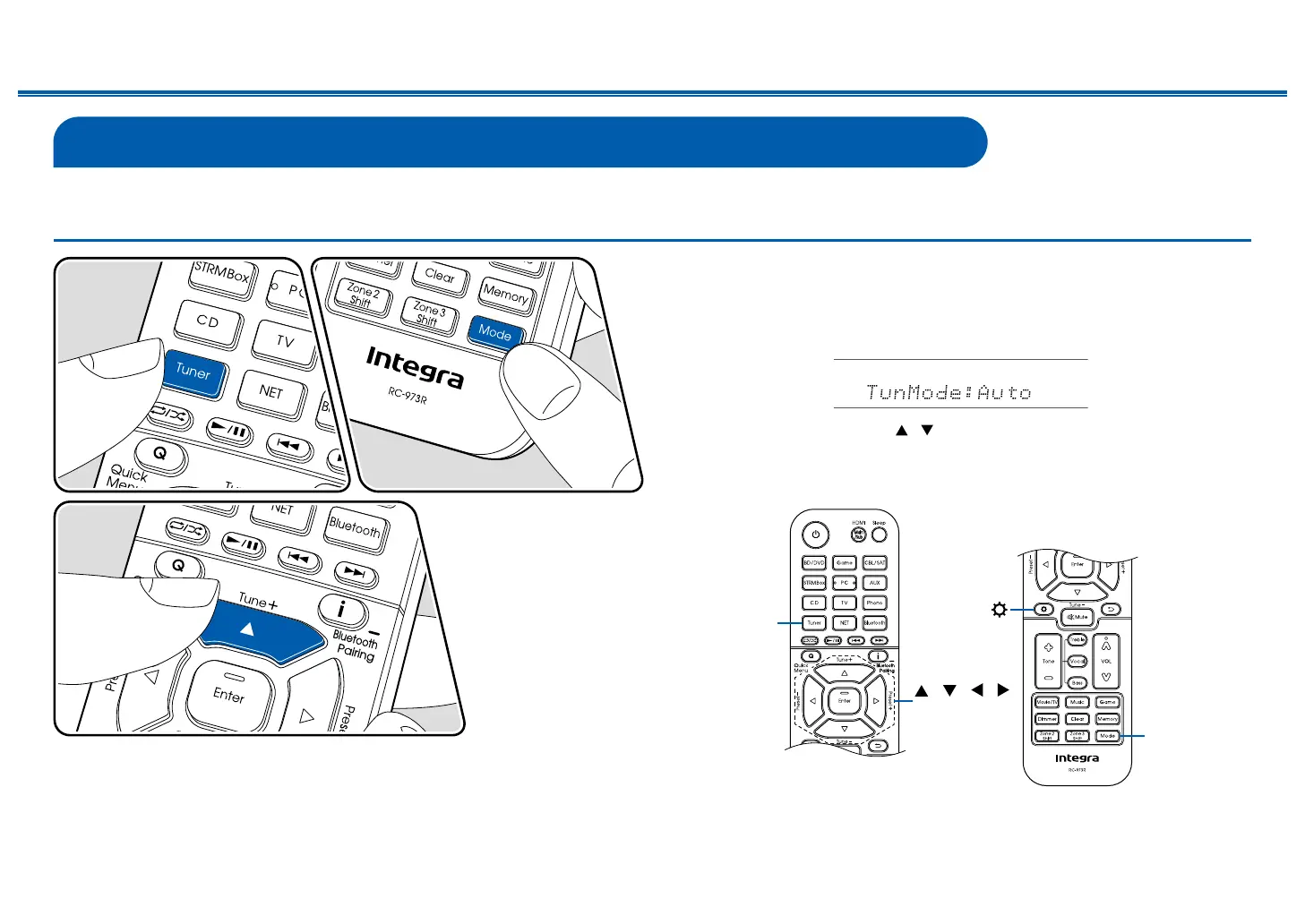 2. Press Mode repeatedly to display "TunMode: Auto" on the display.