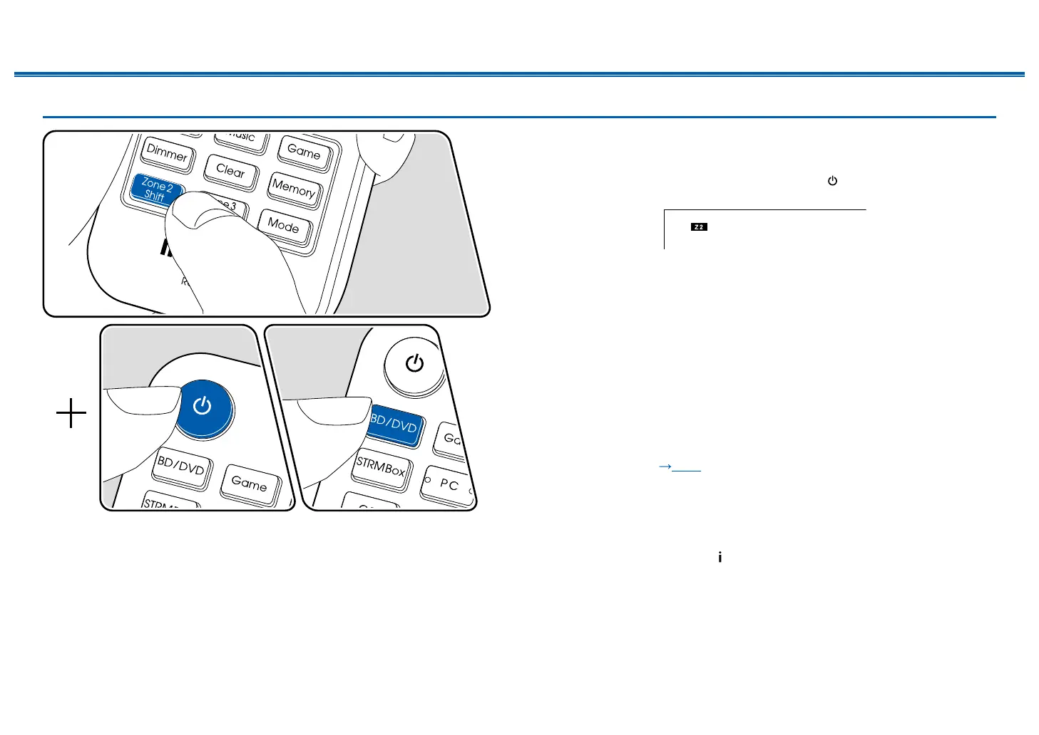 In remote controller operation, while pressing and holding the Zone 2 Shift button,