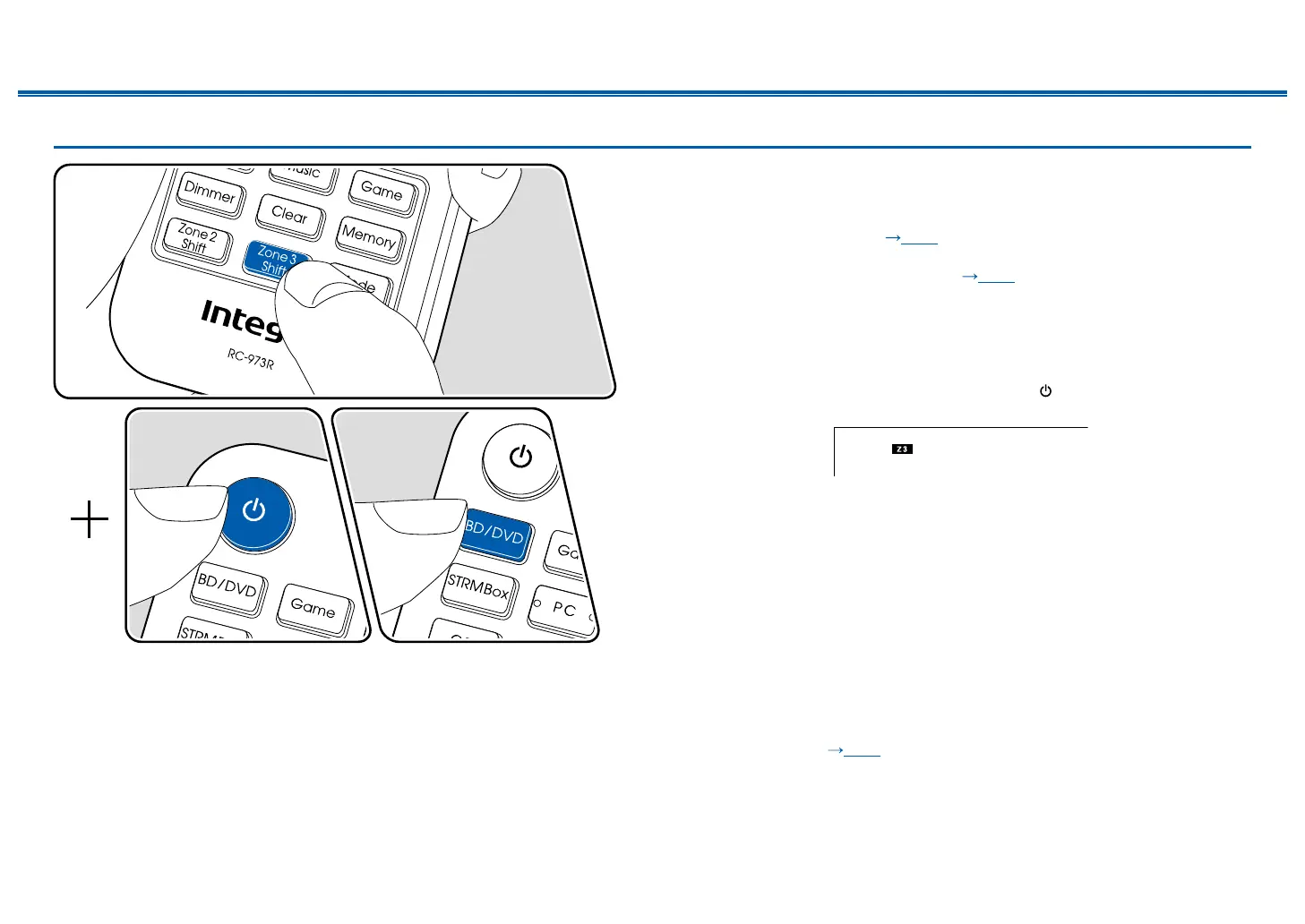 In remote controller operation, while pressing and holding the Zone 3 Shift button,