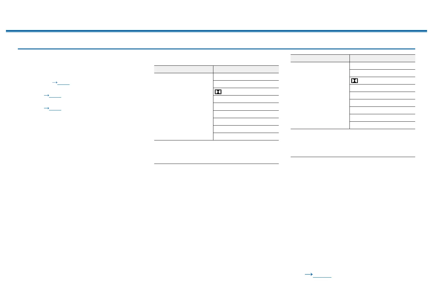 • List of listening modes selectable with the Music
