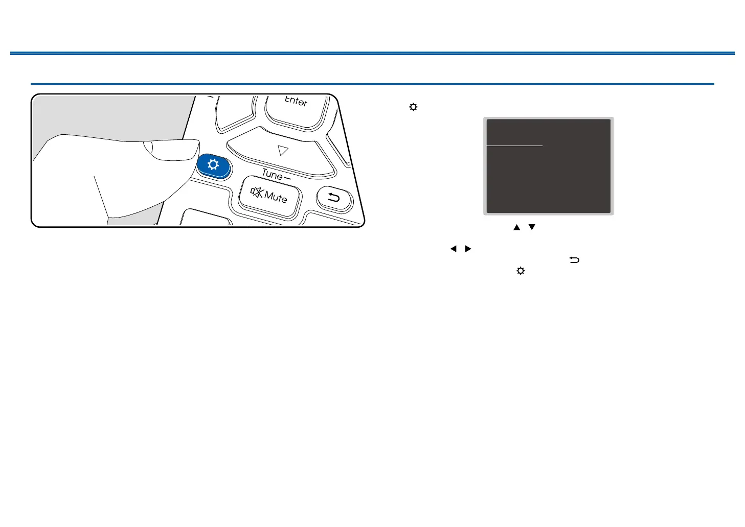 Press on the remote controller to display the Setup menu.